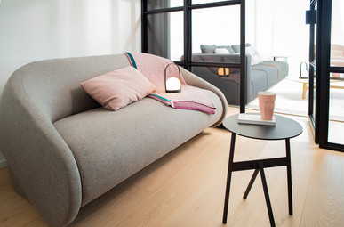 Facile à vivre, jolies matières, palette douce et sobre...voici en quelques mots les envies de notre cliente. Après avoir parcouru quelques catalogues ensemble, des coups de coeur émergent: les petits fauteuils Oslo de Muuto, la table Lore de Treku, du rose poudré et des gris nuancés, et la suite n'est qu'harmonisation et composition pour arriver à une proposition d'ensemble qui a séduit! Quelques semaines plus tard, l'appartement meublé par nos soins devenait le nouveau repère des vacances en famille. Croyez-nous, l'impatience et l'excitation sont toujours aussi grandes pour nous que pour nos clients!